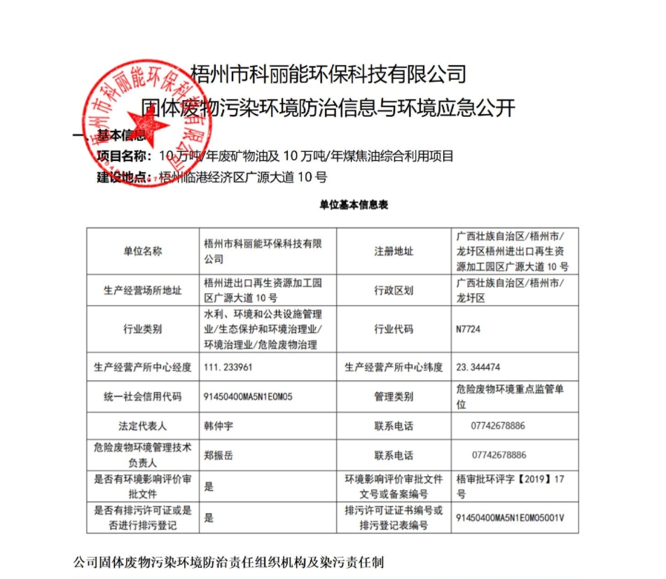梧州?jng)科丽能环保U技有限公司成立?018q??0日,位于梧州?jng)龙圩区梧州q口再生资源加工园区内,业务늛危险废物的综合利用与环保技术服务支持。目前已具备废矿物a(b)QHW08Q、煤焦a(b)QHW11)两大cd险废物经营资质,危险废物处置能力辑ֈ20万吨/q_(d)其中废矿物a(b)10万吨/q、煤焦a(b)10万吨/q?br>